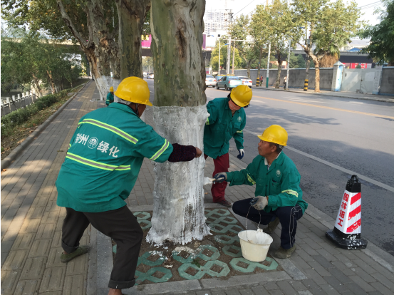 為加強(qiáng)法桐病蟲(chóng)害冬季防治,美化城市道路景觀,市綠化管理處從今年10月20日開(kāi)始對(duì)中心城區(qū)7000余株法桐進(jìn)行涂白,為樹(shù)木穿上白色“新衣”。