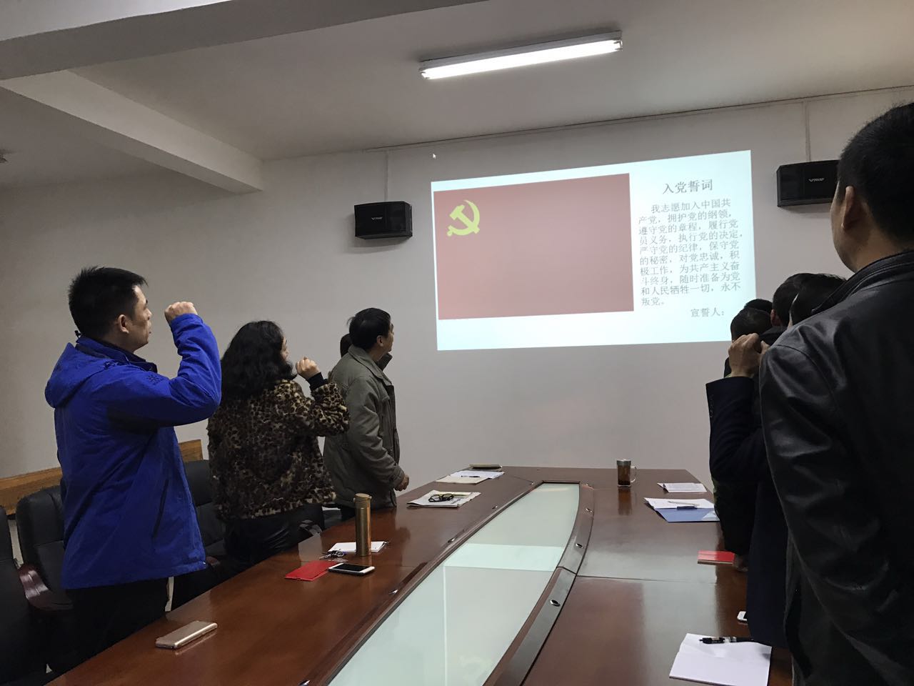 上黨課,跟黨走 2016年12月10日早上8:30,從綠化處會(huì)議室傳來(lái)了“我志愿加入中國(guó)共產(chǎn)黨,擁護(hù)黨的綱領(lǐng)……”的入黨宣誓聲。這不是某位黨員入黨前的宣誓,而是綠化處的黨員們?cè)谥販厝朦h誓詞。每月的10日,是綠化處的黨員活動(dòng)日。在12月的黨員活動(dòng)日,綠化處的黨員們胸佩黨徽,心懷對(duì)黨的熱愛(ài),一起認(rèn)真學(xué)習(xí)了《中國(guó)共產(chǎn)黨黨內(nèi)監(jiān)督條例》。上黨課,學(xué)習(xí)黨的理論;上黨課,時(shí)刻警醒自己;上黨課,將黨放在心中;上黨課,一輩子跟著黨走。