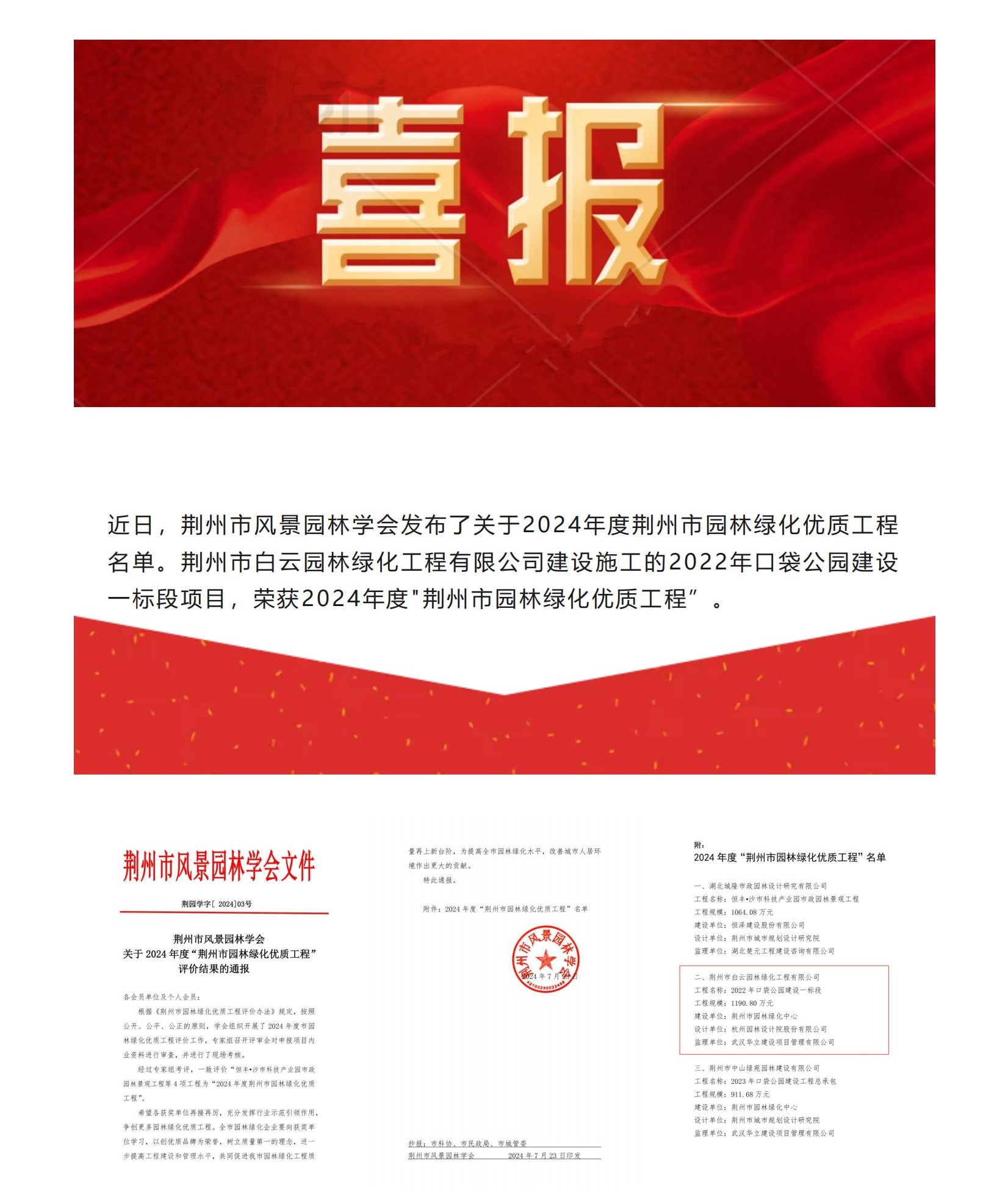 喜報(bào)|白云園林榮獲荊州市風(fēng)景園林學(xué)會優(yōu)質(zhì)工程獎項(xiàng)